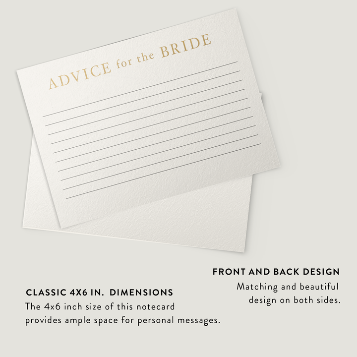 Black lines provide ample space for thoughtful, personal messages, while the blank back allows for extra creativity. Perfect for weddings, bridal showers, or keepsakes, these elegant cards make it easy to collect meaningful advice that the bride will cherish forever.