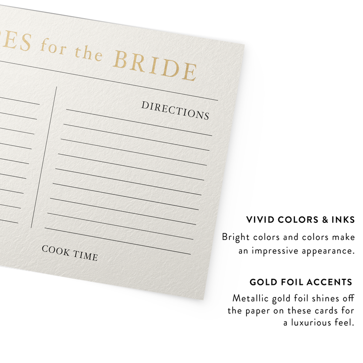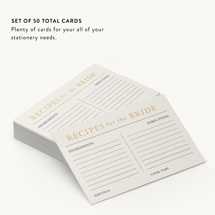 Matte Gold Bridal Recipe Cards, 48 Card Set